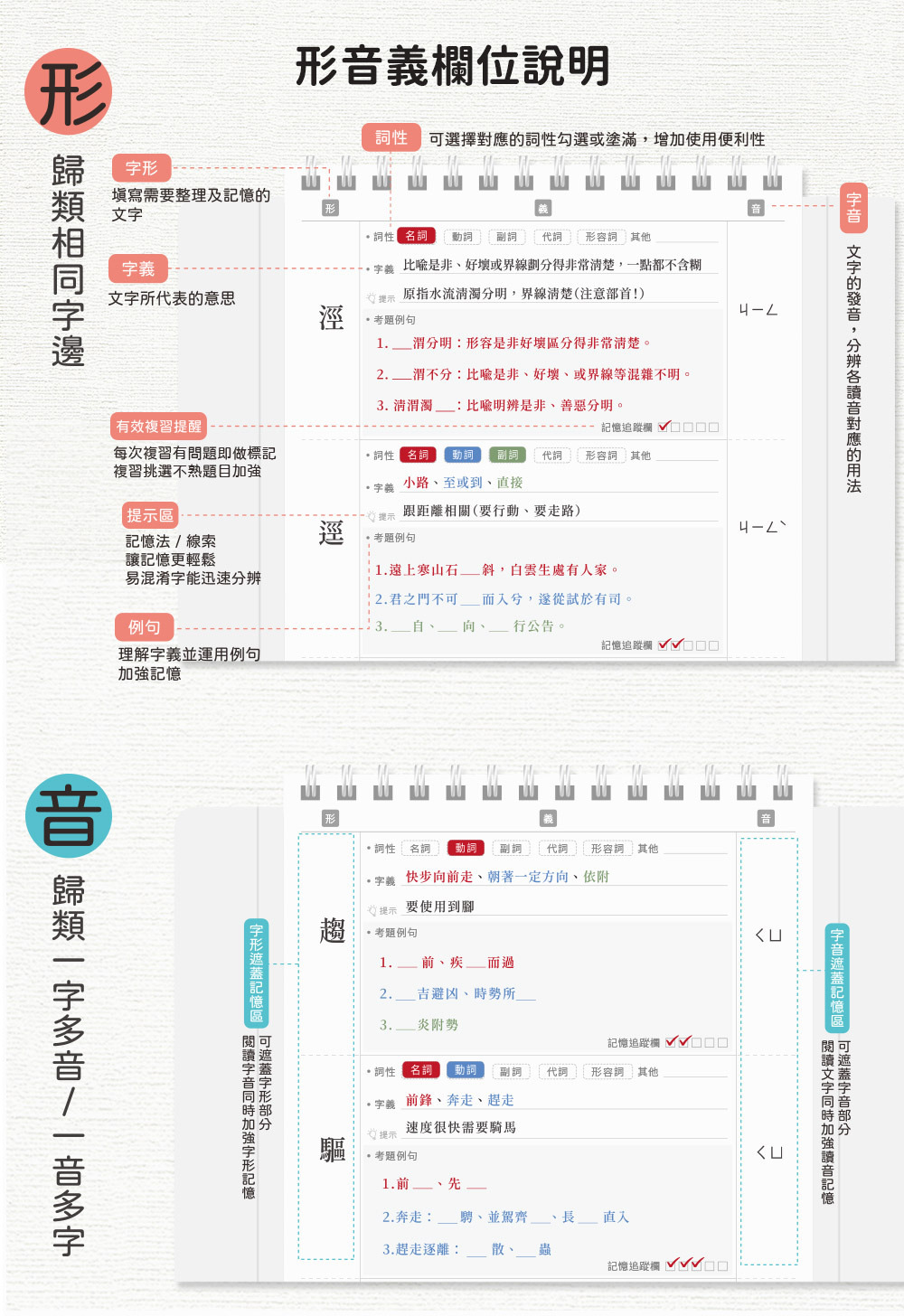 獨家設計的筆記細節,確保難字進入長期記憶,實戰不失分