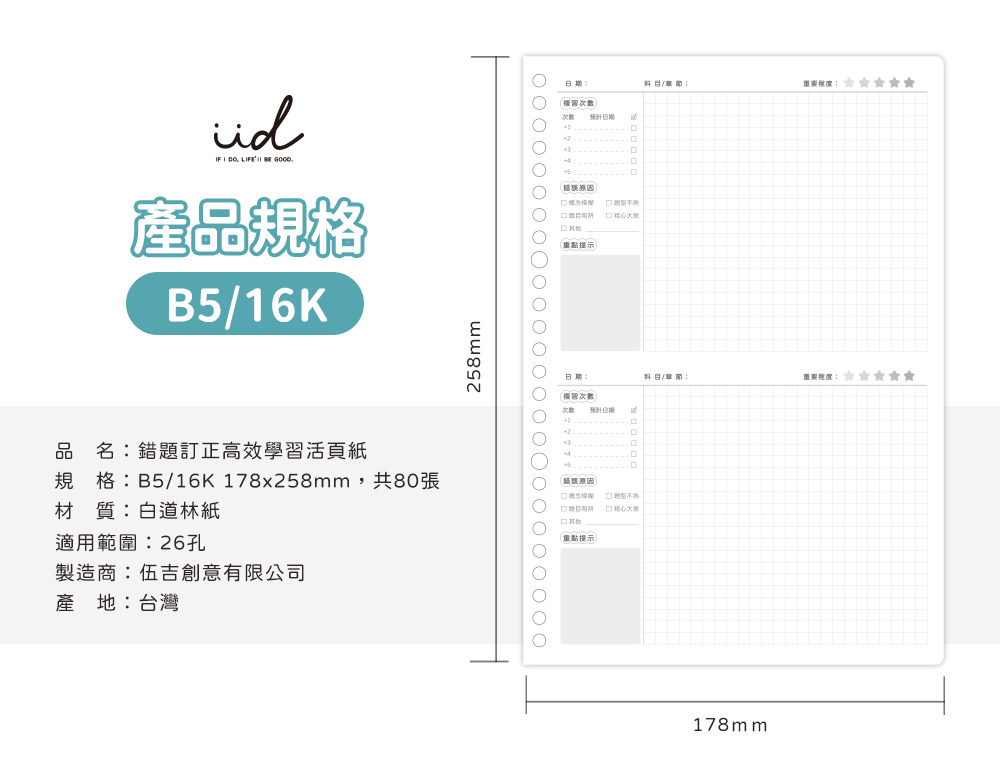 商品 : IfIDo錯題訂正高效學習活頁紙(B5 26孔)