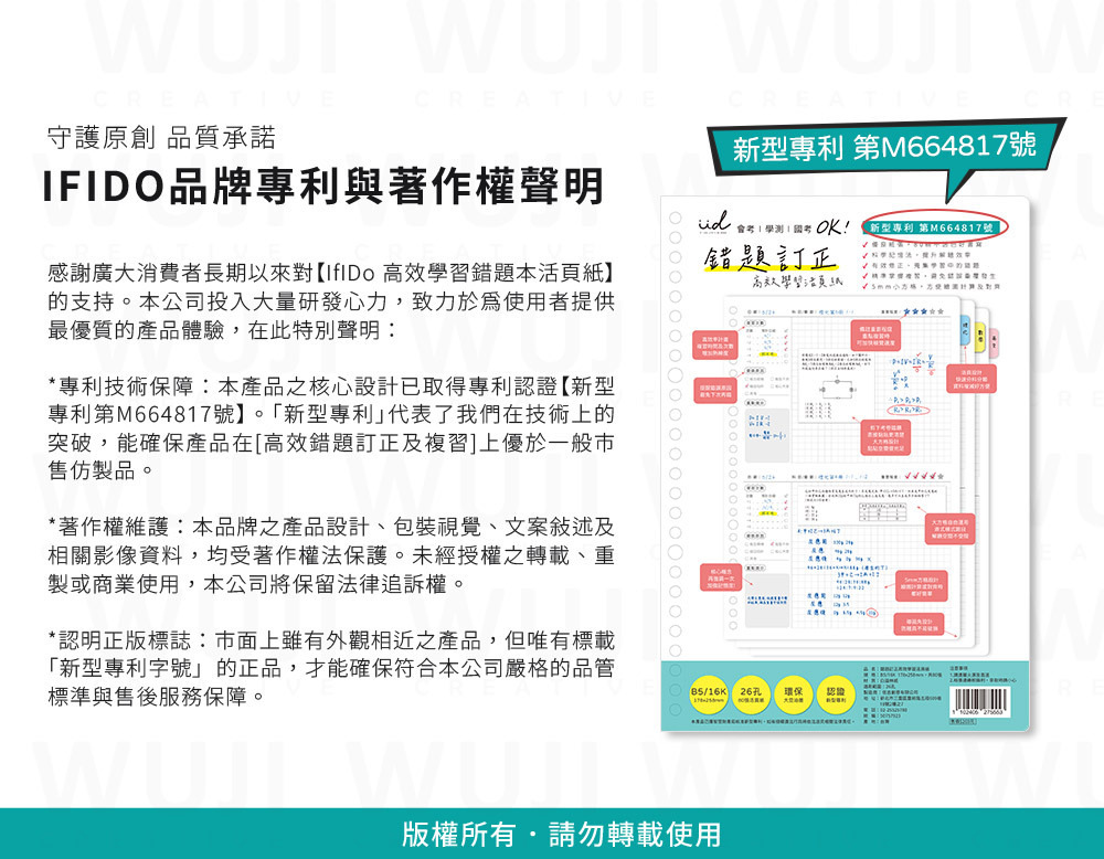 商品 :  IfIDo錯題訂正高效學習活頁紙(B5 26孔)