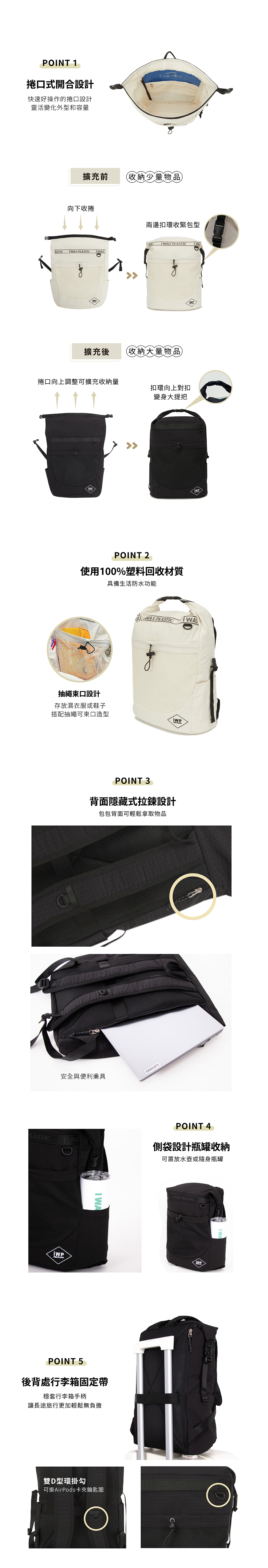 ┆捲起 ! 扣上 ! ┆即可靈活變化外型和容量┆免開合拉鍊快速存取方便!