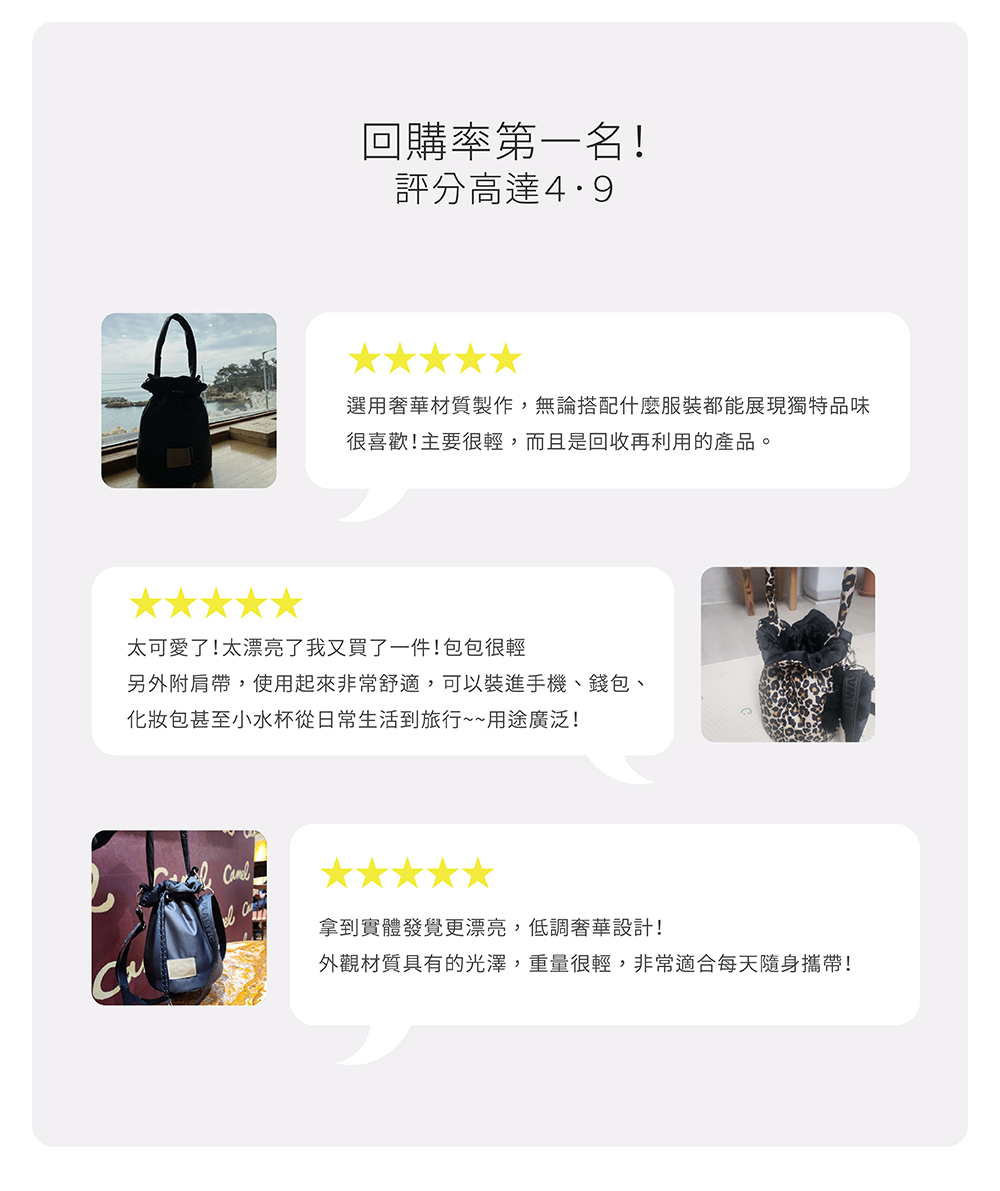 收集廢棄塑膠保特瓶後,重塑、紡織再製成美麗的包