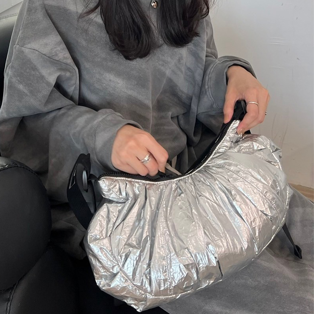 蓬蓬柔軟又圓潤的水餃包搭配尼龍寬提把,簡約時髦得毫不費力