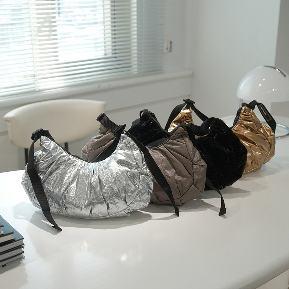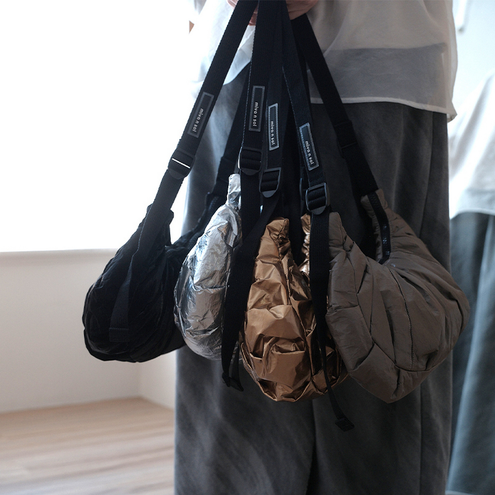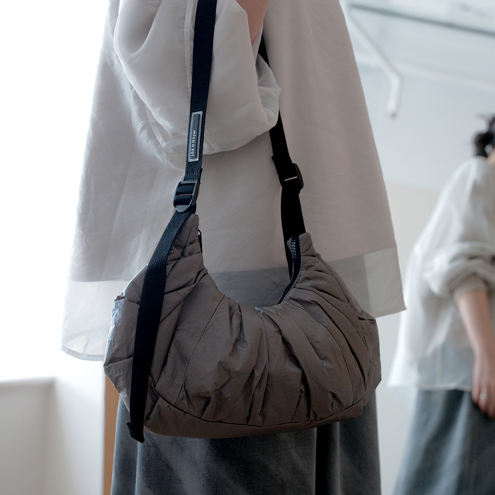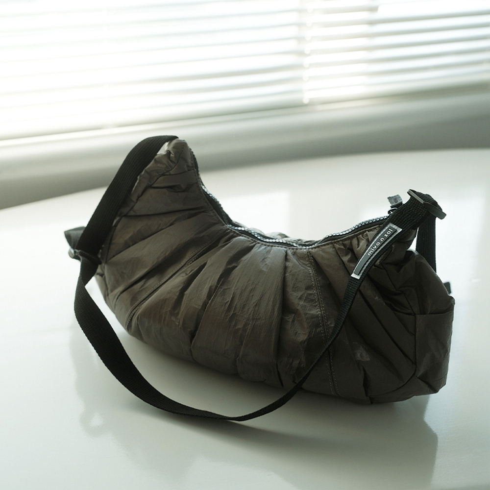 蓬蓬柔軟又圓潤的水餃包搭配尼龍寬提把,簡約時髦得毫不費力