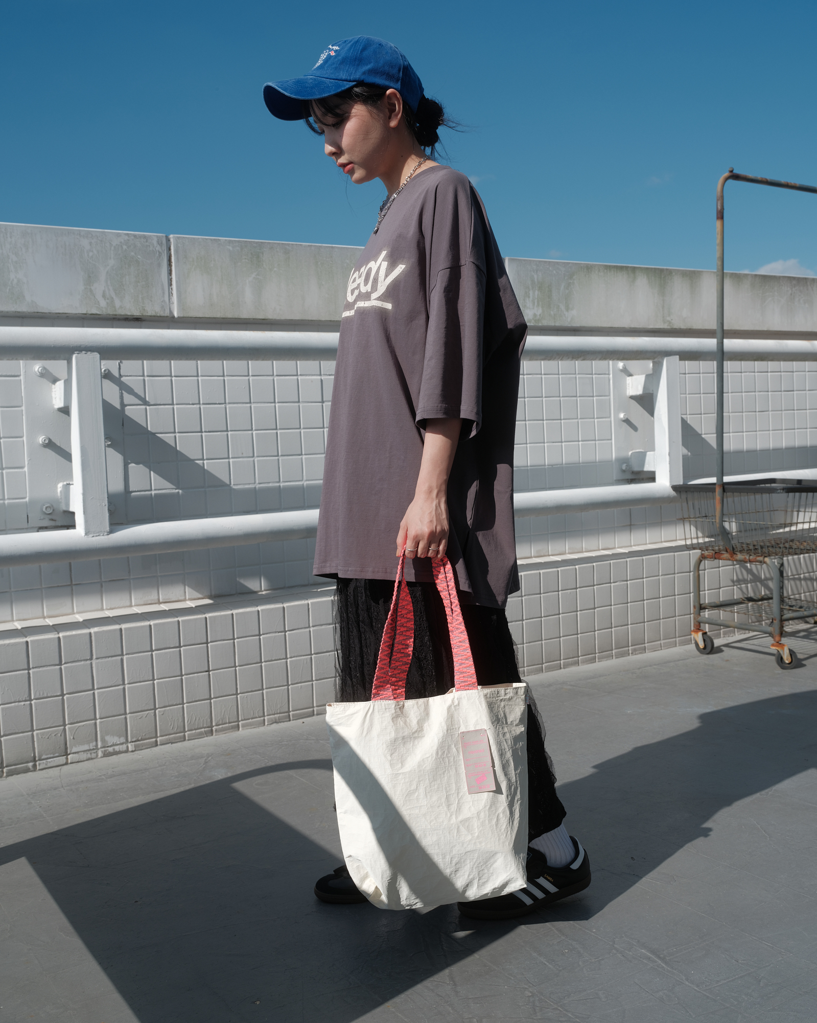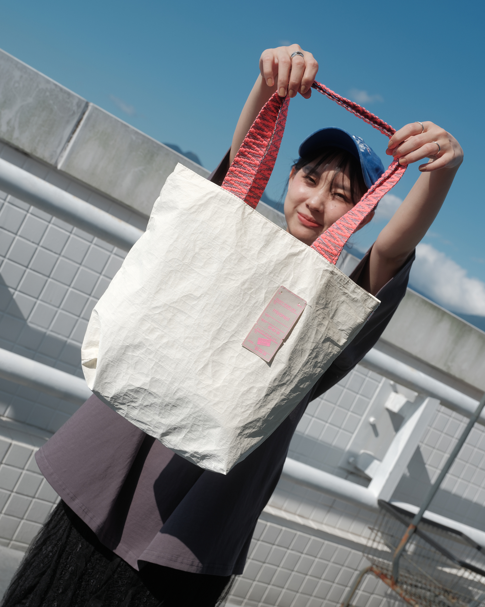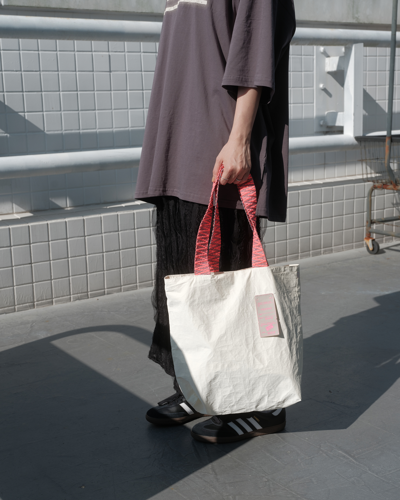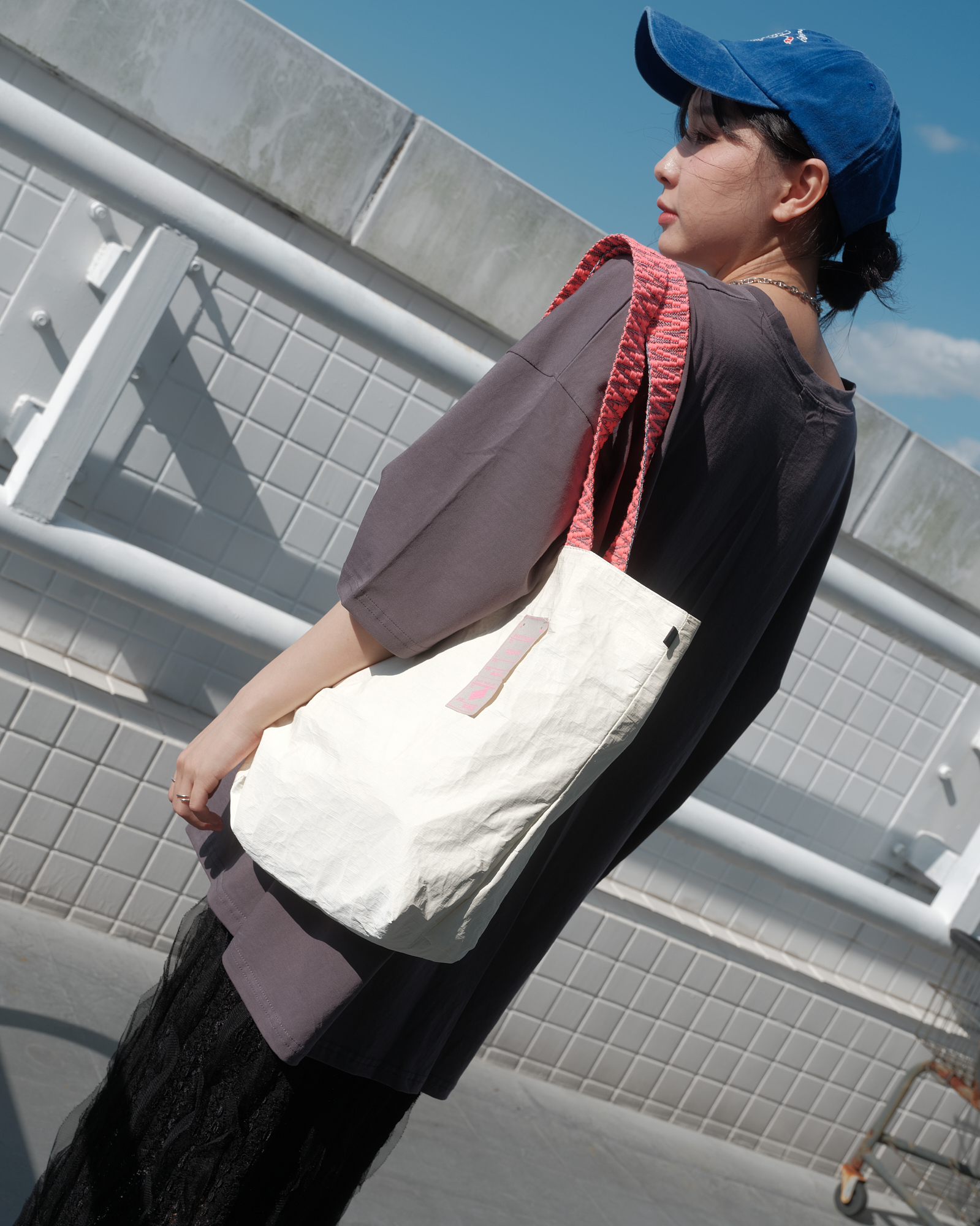 提袋上縫製跳色大布標,是品牌的招牌特色