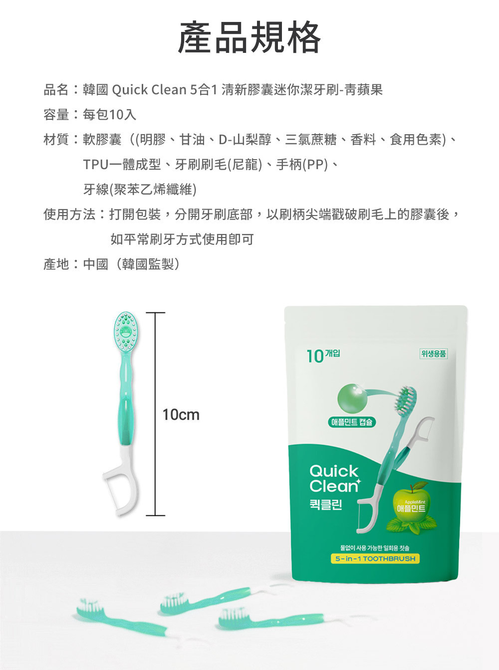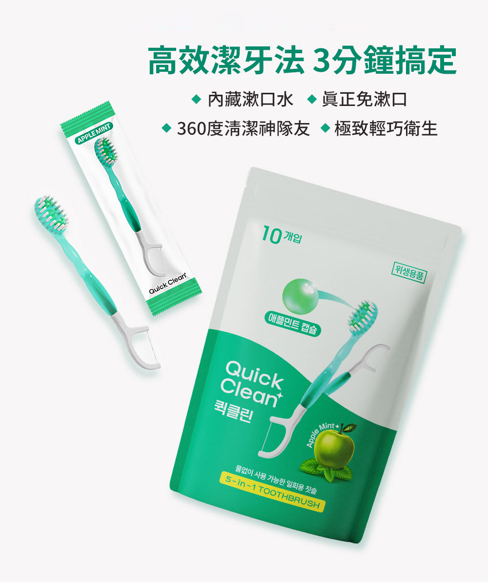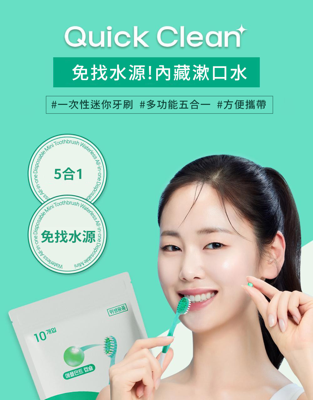 『迎春煥新・質感生活』韓國 Quick Clean 5合1 清新膠囊迷你潔牙刷(10入/包)