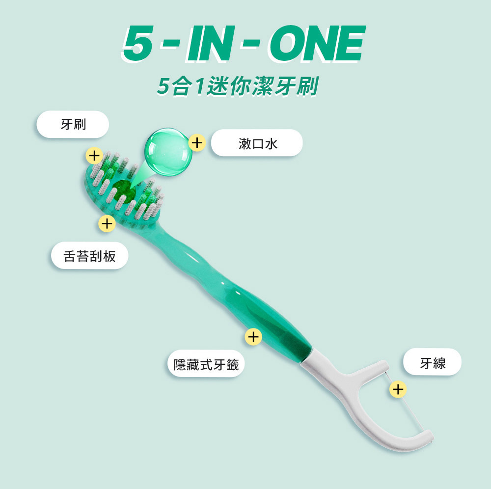 而且還把牙刷、潄口水、牙線、隱藏式牙籤、舌苔刮板,通通濃縮進這一支